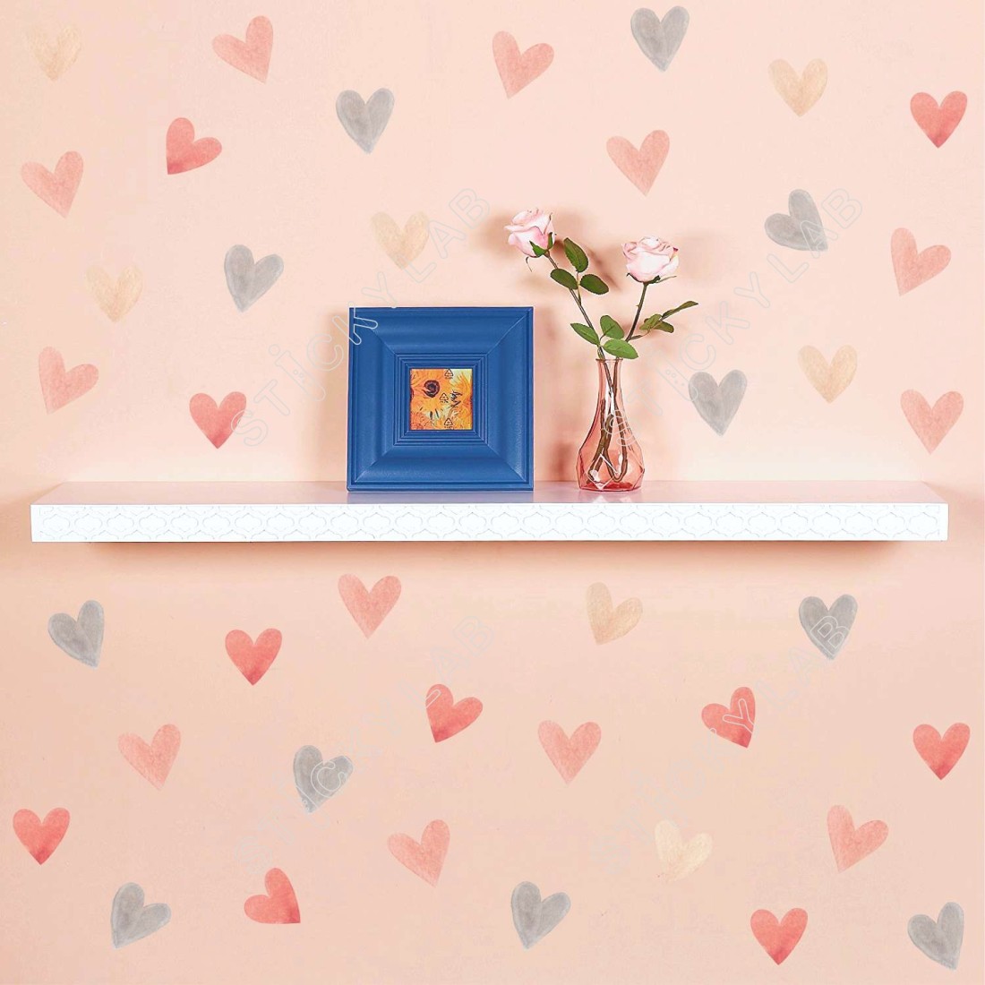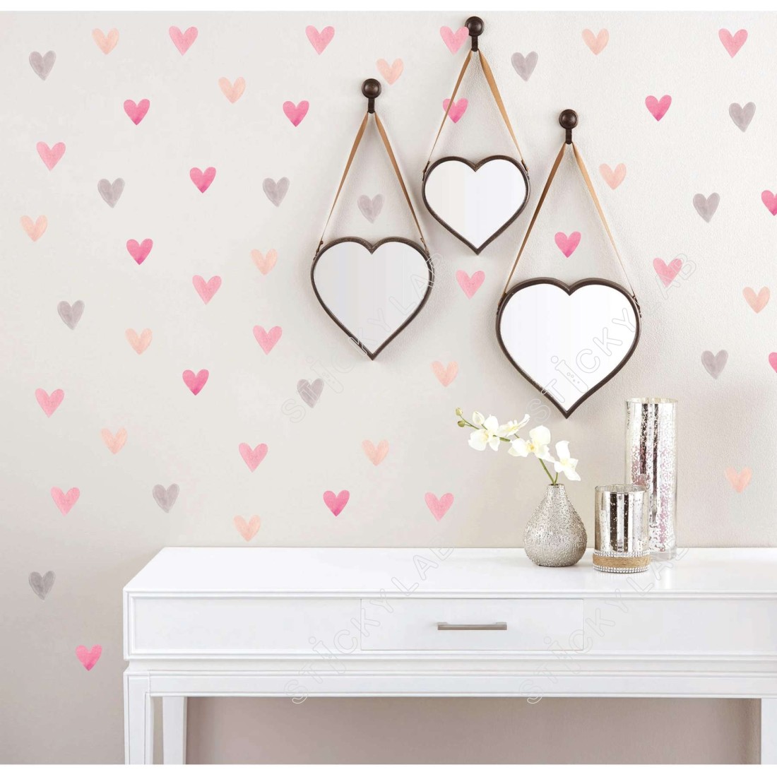 Διακριτικό αυτοκόλλητο τοίχου σε παστέλ χρώματα Το σετ περιλαμβάνει 110 μεμονωμένες καρδούλες (περίπου 8 Χ 9 cm) ενώ οι τελικές διαστάσεις διαμορφώνονται ανάλογα με την τοποθέτησή τους.