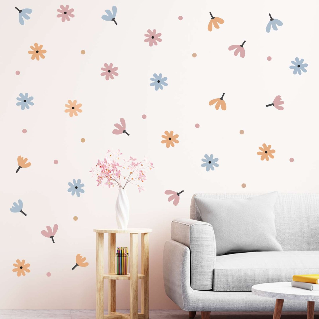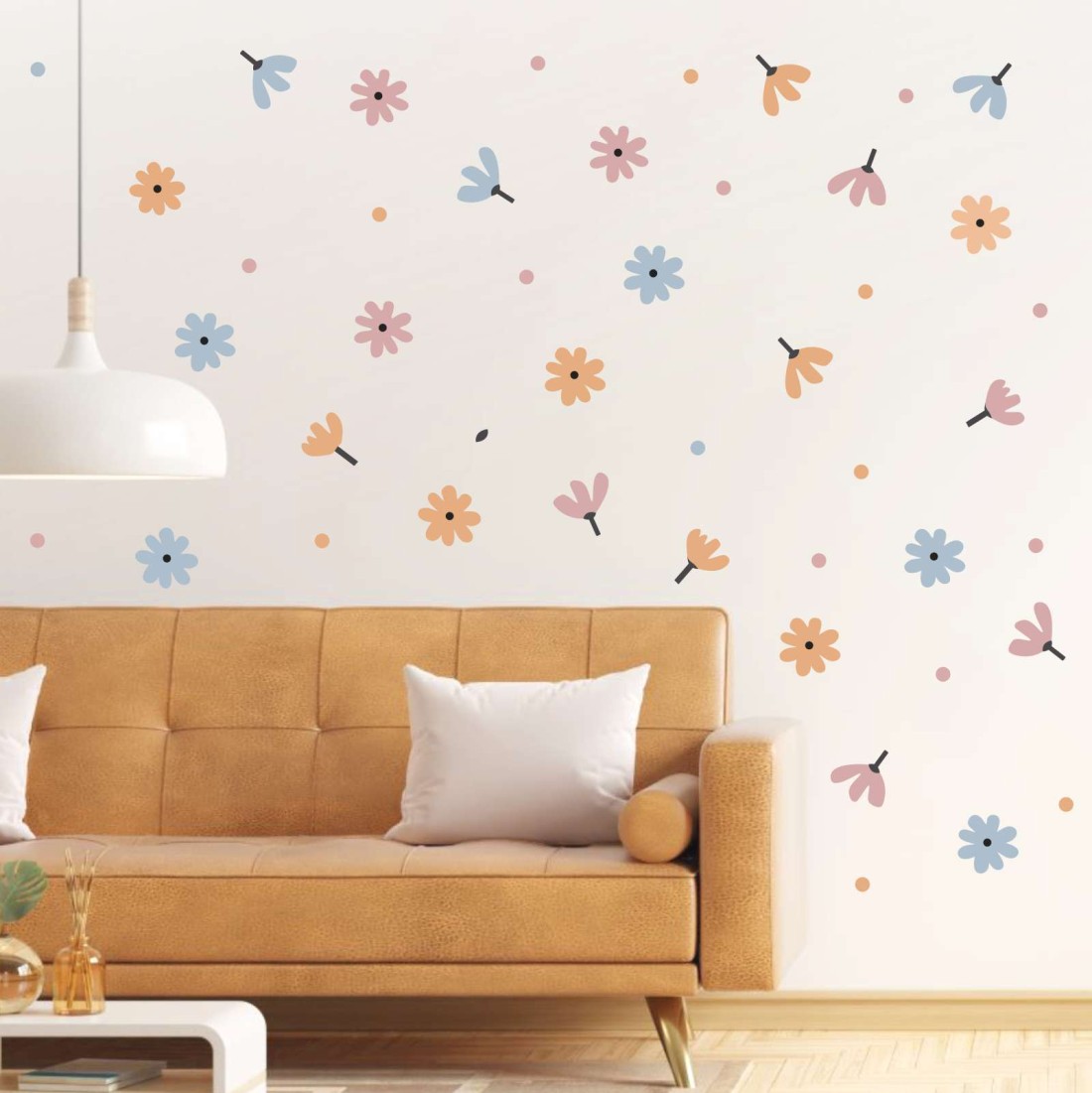 Αυτοκόλλητα τοίχου με υπέροχες minimal λουλούδια σε αντικέ αποχρώσεις.