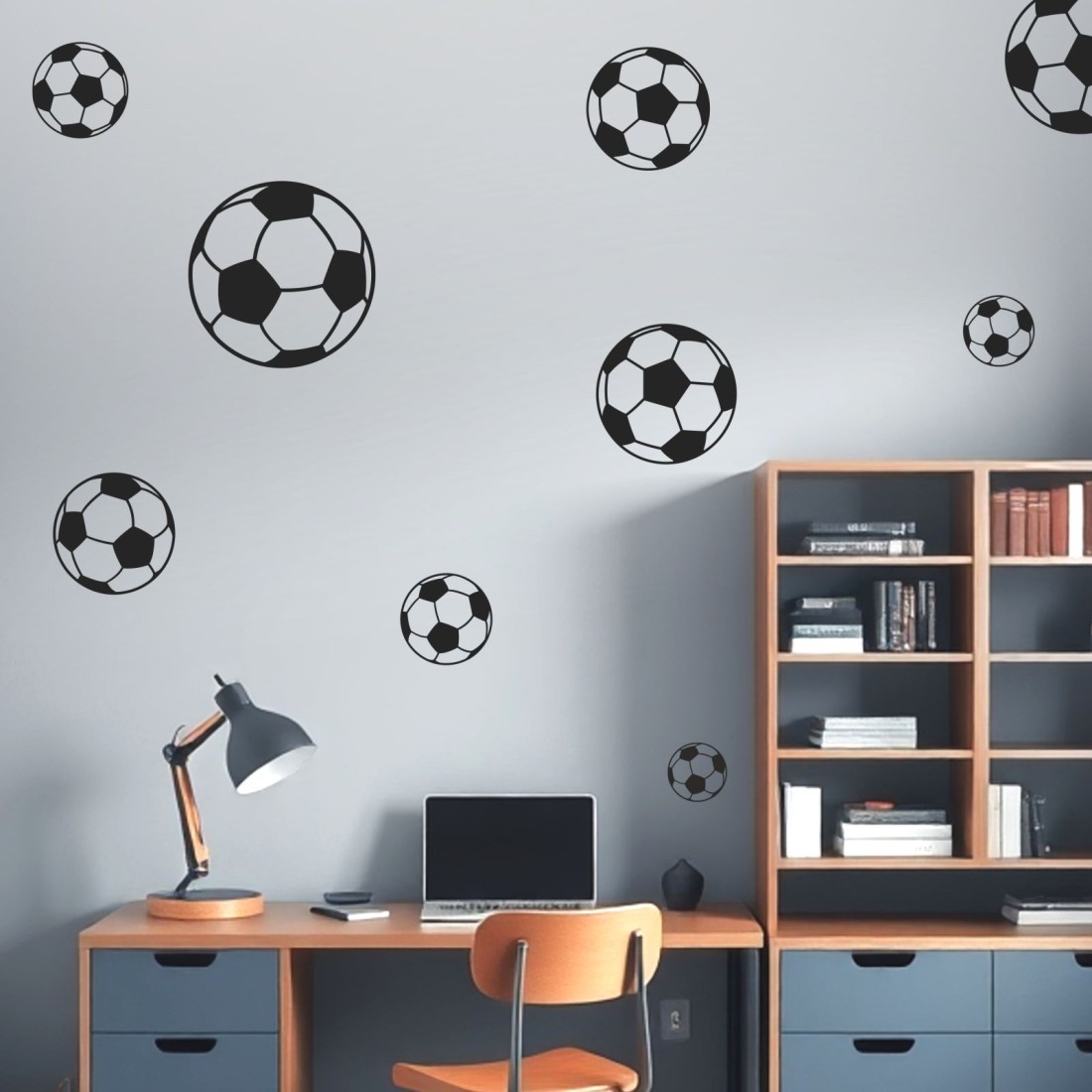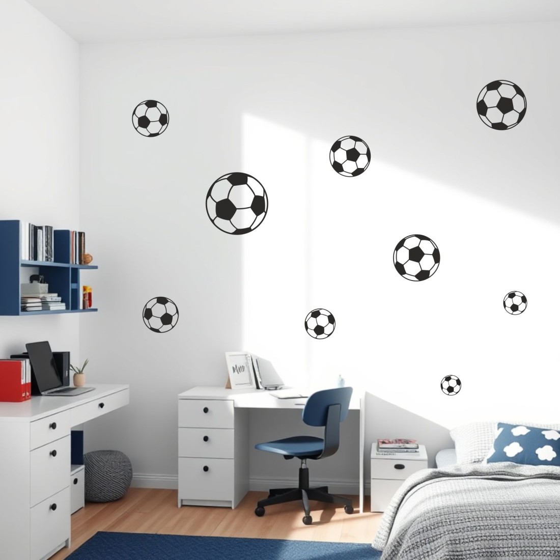 Αυτοκόλλητο τοίχου μπάλες ποδοσφαίρου (9 τεμ) 128016