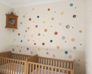 Αυτοκόλλητα τοίχου πουά με watercolor βούλες σε διάφορα γήινα χρώματα και μεγέθη.