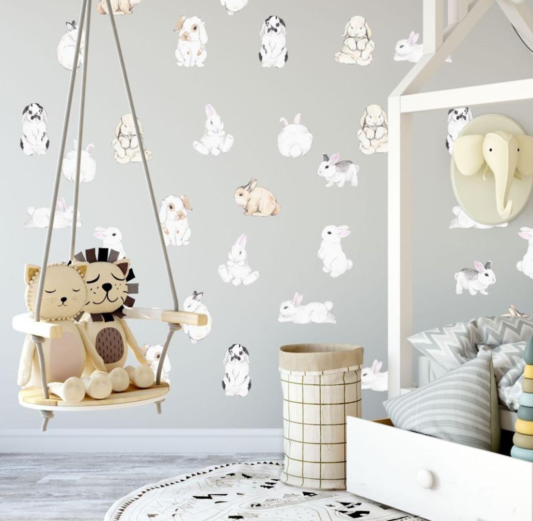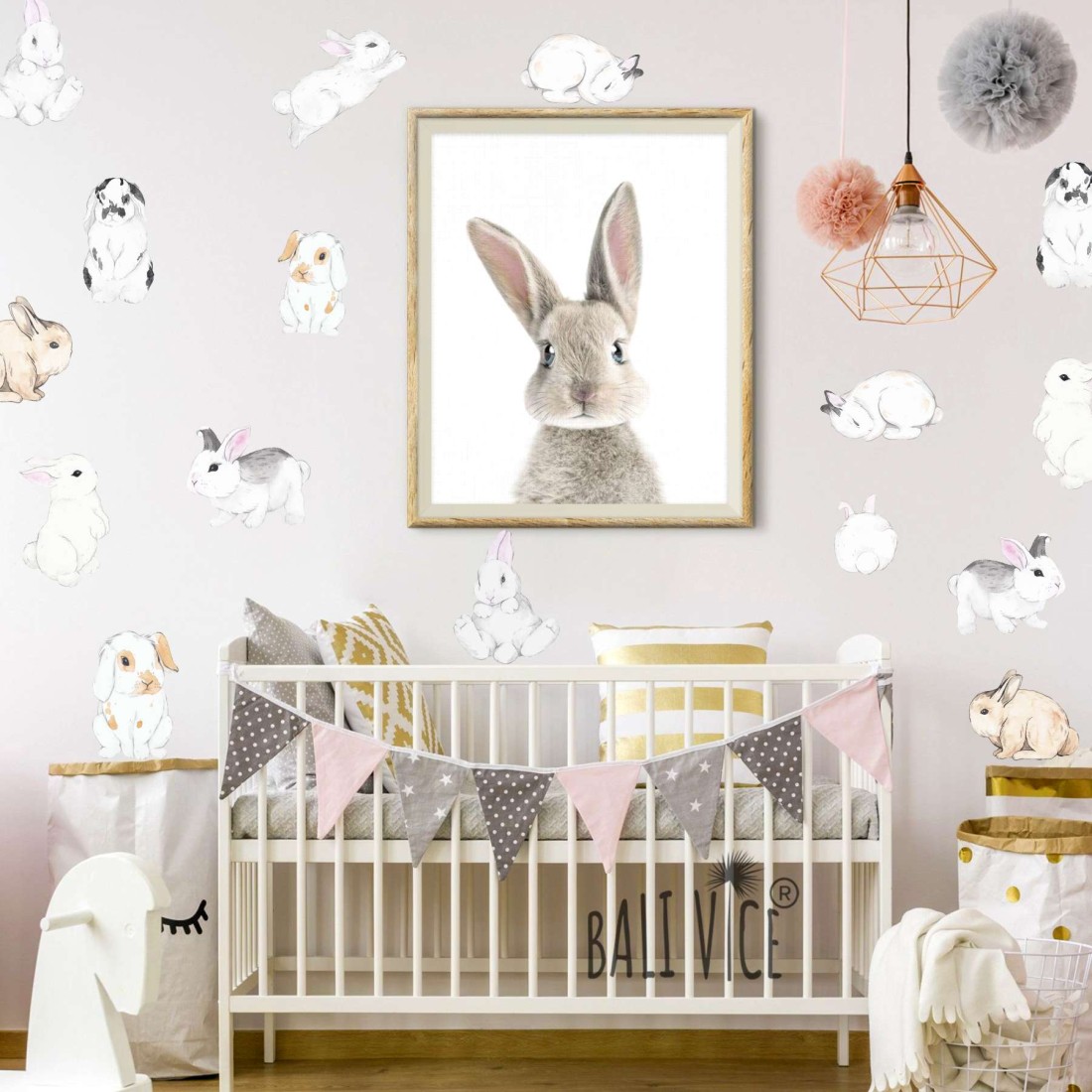 Παιδικό αυτοκόλλητο τοίχου με χαριτωμένο κουνελάκι σε παστέλ χρώματα